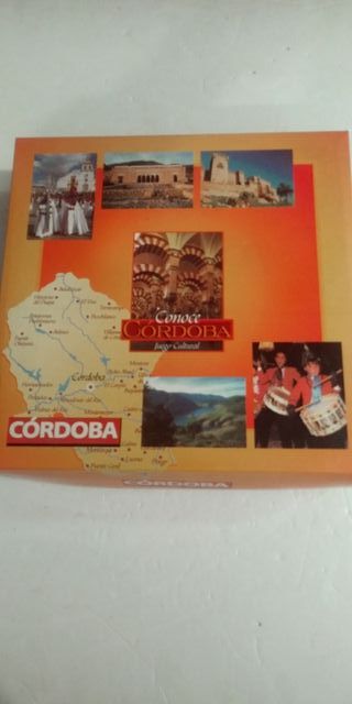 Juego de mesa Conoce Córdoba - Juego Cultural. Completo No se admite descuento - Incluye mapa de Córdoba con lugares de interés. - Ilustraciones de monumentos y paisajes de la región. - Imágenes de personas vestidas con trajes típicos y tocando tambores.