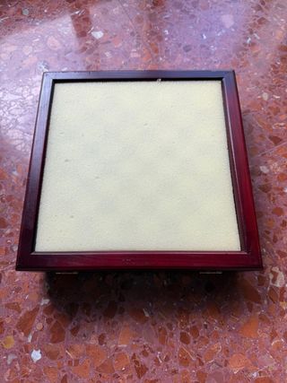 Juego de ajedrez con tablero y piezas de cristal. Incluye una caja de madera para guardarlo. Esta sin usar. Con una medida de 25x25cm