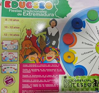 Juego de mesa sobre las fiestas de Extremadura. Está en perfecto estado. Con todas sus piezas. Nunca se ha usado.