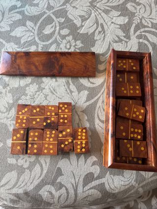 Precioso juego de dominó fabricado en madera. - Piezas de madera con puntos. - Incluye caja de madera para guardarlo.