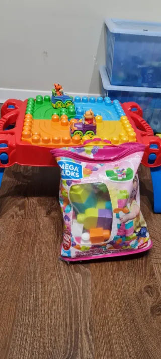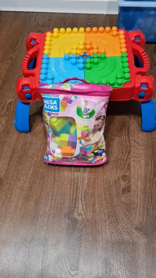 Se vende mesa de construcción Mega Bloks con su bolsa de bloques. - Mesa de juego con superficie para construir. - Bolsa de almacenamiento con bloques de MegaBloks - Dos coches NO HAGO ENVIOS