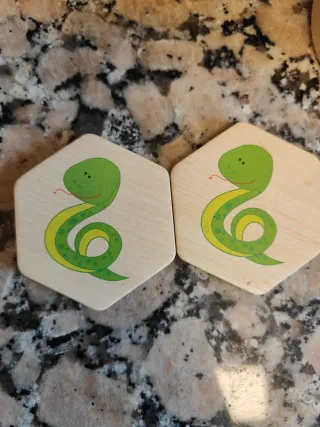 Juego de mesa de hacer parejas de animales, de madera. -28 piezas. -Juego completo - Ligero y versátil, ideal para llevar de viaje. -Educativo con las imágenes de los animales. - A partir de los 6 meses.