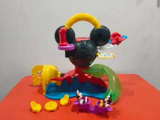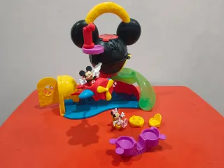 Divertido juego de Mickey y Minnie con un avión. - Incluye figuras de Mickey y Minnie. - Base de juego con elementos interactivos. - Accesorios como mesa y sillas.