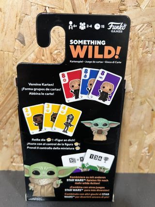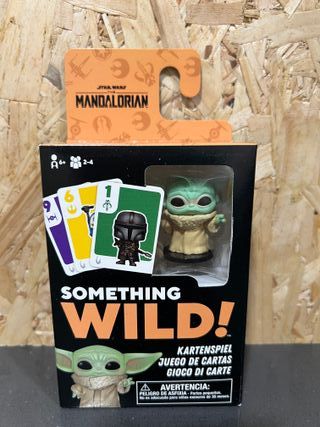Juego de cartas Something Wild! de Star Wars: The Mandalorian. Incluye una figura. - Basado en la serie The Mandalorian. - Para 2-4 jugadores. - Apto para mayores de 6 años. - Contiene advertencia de piezas pequeñas.