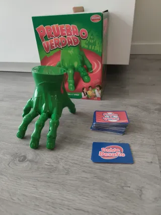 Divertido juego de mesa Prueba o Verdad de Bizak. Incluye el juego de la mano verde y dos mazos de cartas. - Juego de mesa Prueba o Verdad. - Incluye mano verde. - Dos mazos de cartas: Prueba o Verdad y Doble Desafío.