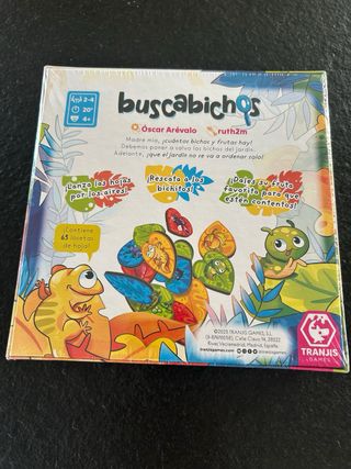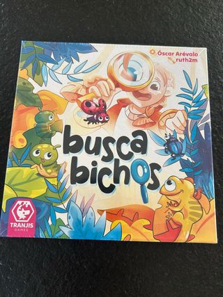 Juego de mesa Busca bichos, ideal para los más pequeños. - Ilustraciones coloridas y divertidas. - Incluye componentes para jugar. - Diseñado por Óscar Arévalo y ruth2m.