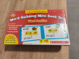Set de mini-libros para construir palabras en inglés, ideal para el aprendizaje de Word Families. - Incluye 20 mini-libros resistentes y laminados. Se puede escribir y borrar sobre ellos con rotuladores de pizarra. - Contiene una guía de enseñanza.