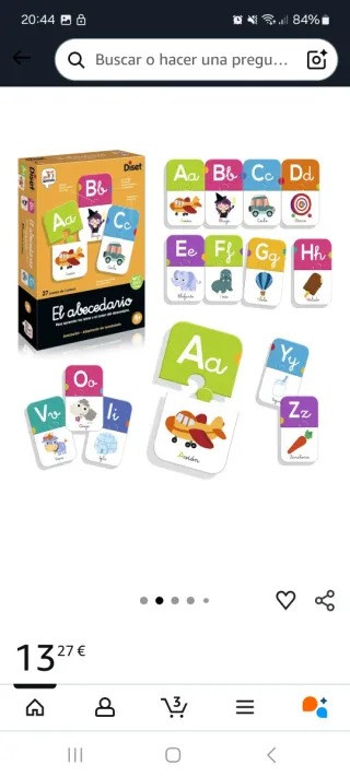 Juego educativo de la marca Diset para aprender el abecedario. Esta completo y muy bien cuidado. - Incluye 27 piezas. - Diseñado para niños a partir de 4 años. - Fomenta el aprendizaje de letras y vocabulario.