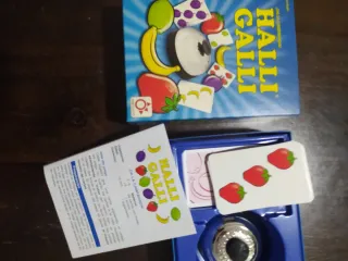 Juego de mesa Halli Galli, ideal para partidas rápidas y divertidas. Incluye el timbre característico del juego. - Juego de cartas con frutas. - Timbre para pulsar.