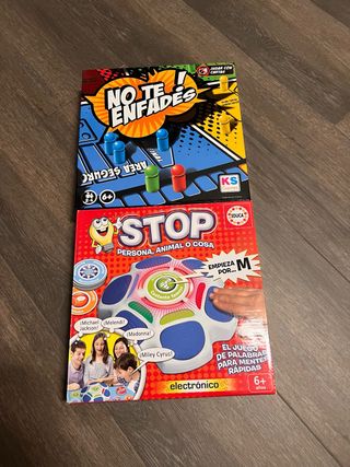 Pack de dos juegos de mesa, Stop y No te Enfades! - Juego Stop: Electrónico, para mentes rápidas. - Juego No te Enfades!: Incluye cartas, para 2-6 jugadores.