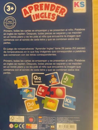 Juego de mesa para aprender inglés, ideal para preescolares. Contiene 52 piezas. - Incluye letras y vocabulario básico. - Diseñado para niños de 3 años en adelante. - Marca: KS Games - Edad recomendada: 3+ años - Tipo: Juego de puzzle educativo - Temática: Alfabeto y vocabulario básico en inglés