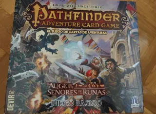 Juego de cartas de aventuras Pathfinder: el auge de los señores de las runas. - Edición en español. - Título: El Auge de los Señores de las Runas. Juego básico más seis ampliaciones ( del 1 al 6) Cartas enfundadas. Incluye dados y la caja original así como las cajas de las ampliaciones ( dos están dobladas)