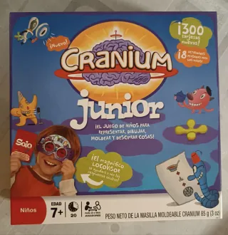 Juego de mesa Cranium Junior, ideal para niños. Incluye 300 tarjetas nuevas y 8 actividades. - Juego de mesa para representar, dibujar, moldear y descifrar. - Incluye Locovisor para ver respuestas ocultas. - Contenido neto de masilla moldeable: 85 g (3 oz). - Para 2 o más jugadores. - Edad recomendada: 7+.