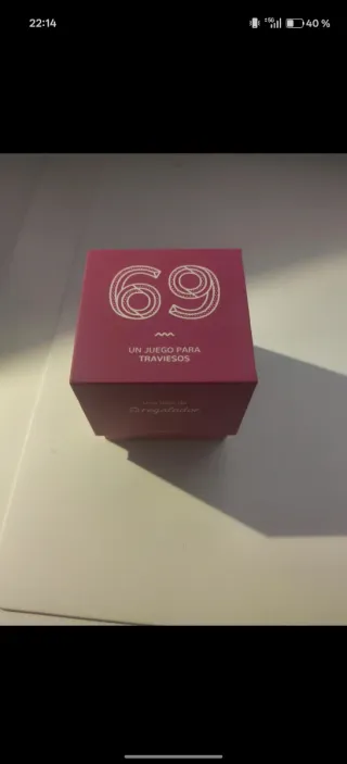 Caja del juego de mesa 69. - Diseño en color rosa. - Incluye el texto UN JUEGO PARA TRAVIESOS.