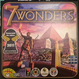 Juego de mesa 7 Wonders. Una carta tiene un pequeño defecto. Vino doblada desde la adquisición del juego. Se puede ver en la foto del producto