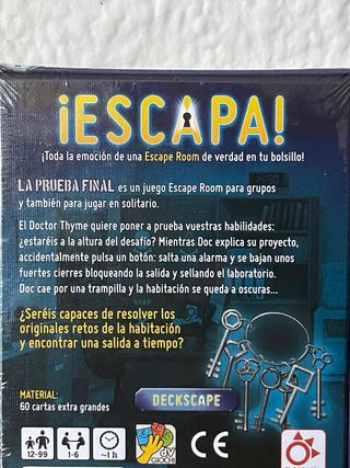 Juego de mesa ¡Escapa! La Prueba Final. - Juego de escape room de bolsillo. - Diseñado por Martino Chiacchiera & Silvano Sorrentine. - Publicado por Mercurio.