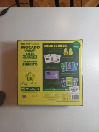 Juego de mesa Throw Throw Avocado de Exploding Kittens precintado sin abrir. Ideal para fiestas y para jugar en familia. - Juego de lanzamiento de aguacates. - Para 2-6 jugadores. - Edad recomendada: 7+ años. - Se puede combinar con Throw Throw Burrito para desbloquear un nuevo juego. NO LEER: Juego de mesa, exploding kittens, cartas, rol, Throw Throw Burrito