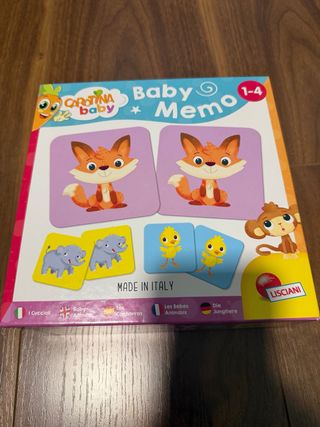 Juego de memoria Baby Memo de Lisciani, ideal para los más pequeños. Incluye cartas con divertidos animales. NUEVO - Juego de memoria para bebés. - Ilustraciones de animales. - Fabricado en Italia. -Ideal para trabajar la memoria y la atención Montesori