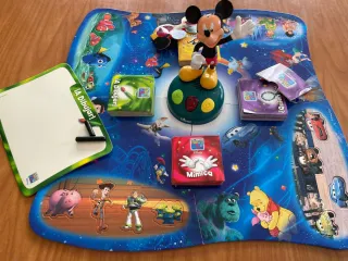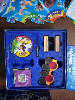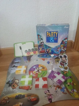 Juego de mesa Party & Co de Disney, ideal para divertirse en familia. - Incluye tablero con personajes de Disney. - Tarjetas de ¡A Dibujar!, Mímica y ¿Quién Soy? - Figura de Mickey Mouse. - Pizarra pequeña con rotulador.