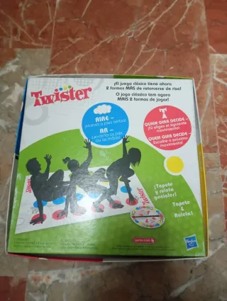 Juego de mesa clásico Twister de Hasbro, con movimientos adicionales. - Incluye tapete de juego. - Para 2 o más jugadores. - Edad recomendada: 6+ años. - Requiere montaje por un adulto. - En buen estado, puede tener marcas de uso pero está bien tratado.