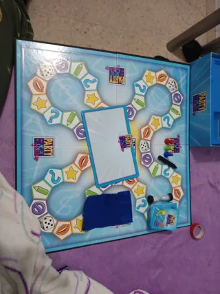 Juego de mesa Party&Co Junior, ideal para fiestas y reuniones. - Tablero de juego con casillas de colores. - Incluye pizarra blanca y rotuladores. - Paño de limpieza azul.