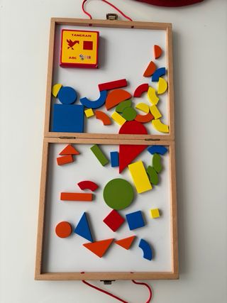 Juego de mesa Djeco para niños. Formas magnéticas tipo tangram. Cartas incluidas