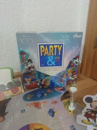 Juego de mesa Party & Co de Disney, edición especial 100 aniversario. - Incluye personajes clásicos y modernos de Disney. - Ideal para toda la familia. - Contiene tablero, cartas y otros componentes para jugar.