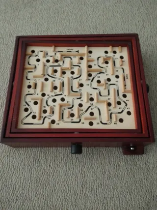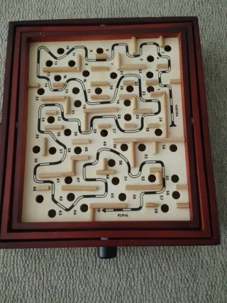 Clásico juego de laberinto de madera. - Tablero de madera con recorrido numerado. - Piezas de madera para crear el laberinto. - Incluye punto de salida y meta.