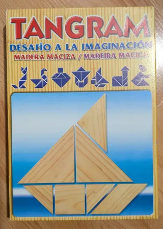 Juego de tangram con piezas de madera maciza. Fomenta la imaginación y la creatividad. - Piezas de madera natural. - Incluye figuras de ejemplo.
