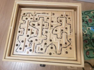 Juego de laberintos de madera de la marca Juguettos. - Incluye 2 tableros de laberintos. - Edad recomendada: 5+ años. - Material: Madera.
