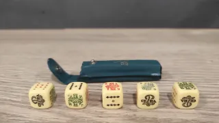 Set de dados de póker de la marca Cepa. Incluye un estuche para guardarlos. - Diseño clásico de dados. - Estuche de color verde con cierre a presión.