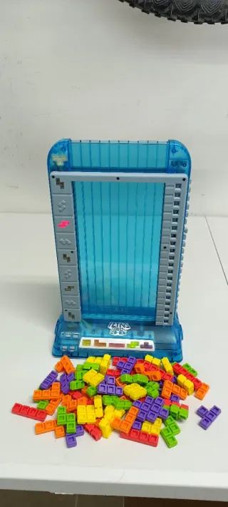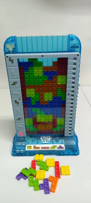 Juego de mesa electrónico Tetris Tower 3D con piezas y luces de colores. - Incluye torre de juego. - Piezas de construcción de varios colores: naranja, morado, verde y amarillo. - Muy poco uso, en perfecto estado. No tengo la caja, de ahí el precio.