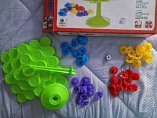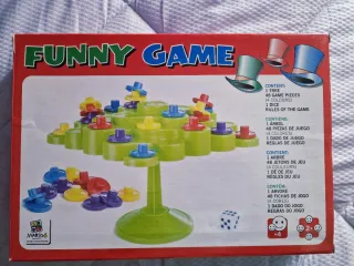 Juego de equilibrio Funny Game Incluye 1 árbol 48 piezas de juego en 4 colores 1 dado Reglas del juego Como nuevo FALTA 1 PIEZA ROJA Y MANUAL