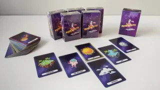 Divertido juego de cartas llamado Meteorito. Juego: METEORITO Juego de 72 Cartas Temática: El Universo Estilo: Competitivo Edad: A partir de 5 años Jugadores: De 2 a 6 Duración: 20min