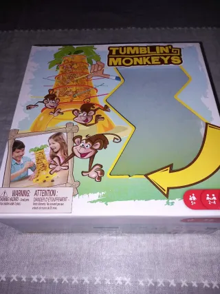Juego de mesa Tumbling Monkeys, ideal para niños. - Incluye juego de mesa. - Advertencia: Peligro de asfixia por piezas pequeñas. No apto para niños menores de 36 meses. - Para 2-4 jugadores. - A partir de 5 años.