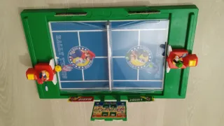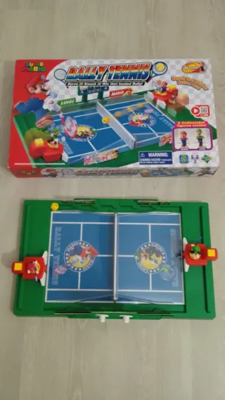 Juego de mesa Rally Tennis con personajes de Mario Bros. - Incluye dos figuras coleccionables. - Diseño inspirado en el videojuego. - Pista de tenis con red.