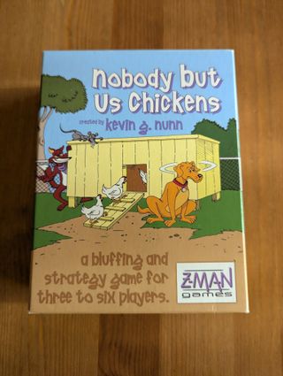 Juego de mesa Nobody but Us Chickens. - Juego de faroleo y estrategia. - Para tres a seis jugadores. - Creado por Kevin G. Nunn. - Publicado por Z-Man Games.