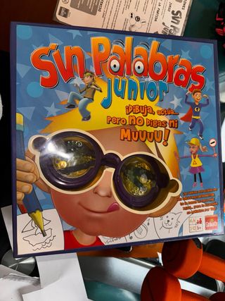 Juego de mesa Sinpalabras Junior en perfecto estado. Incluye todos los componentes: gafas, temporizador, fichas y tablero. Ideal para jugar en familia o con amigos. ¡Diversión asegurada! - Juego de mesa para 2 a 4 jugadores. - Recomendado para mayores de 6 años. - Tiempo de juego aproximado: 15-20 minutos.