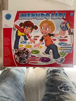 Divertido juego de mesa ¡Menudo Lío! para toda la familia. - Edad recomendada: 4+ años. - Para 2-4 jugadores. - ¡Muévete manteniendo el equilibrio sin caerte! - Si te caes, ¡perderás el juego!