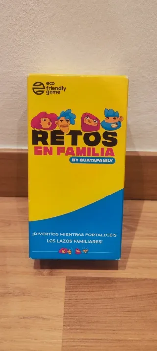 Juego de mesa Retos en Familia de Guatafamily. Fomenta la diversión y el fortalecimiento de los lazos familiares. - Diseño Eco Friendly Game. - Ilustraciones coloridas de personajes. - Mensaje ¡Divertíos mientras fortalecéis los lazos familiares!.