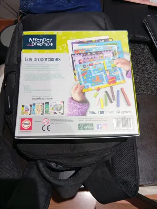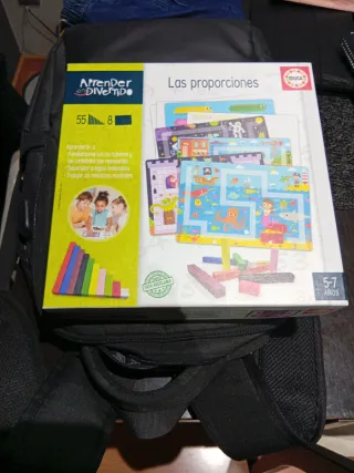 Juego educativo Las Proporciones de Educa, diseñado para niños de 5 a 7 años. Fomenta el aprendizaje de números, lógica matemática y relaciones espaciales. - Incluye tableros y piezas. - Materiales reciclables.