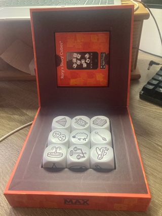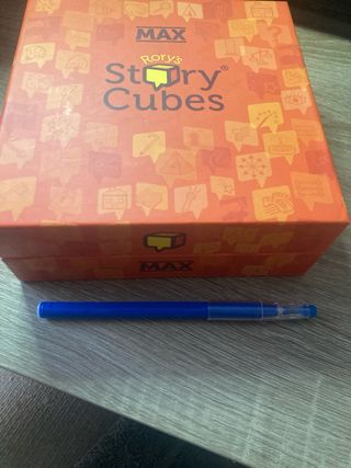 Juego de dados Story Cubes Clásicos de tamaño max para inventar historias. Incluye 9 dados de 3x3x3cm con diferentes imágenes. - Caja original. - 9 dados con ilustraciones. - Fomenta la creatividad y la narración.