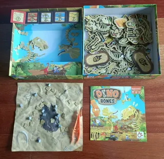 Divertido juego de mesa Dino Bones, ideal para toda la familia. Descubre el mundo de los dinosaurios de una forma interactiva. - Ilustraciones coloridas y atractivas. - Diseñado por Charles Chevallier. - Sello de Mercurio.