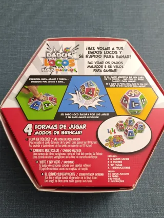 Juego de mesa Dados Locos de Bizak. Incluye dados y cartas para jugar. - Juego de mesa para 2-4 jugadores. - Edad recomendada: +6 años. - Duración aproximada: 15 minutos.