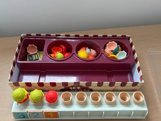Divertido juego para aprender matemáticas básicas de forma lúdica. - Incluye conos, bolas de helado y números. - Fomenta el aprendizaje de sumas y restas. - Tarjetas con operaciones matemáticas. - Dinero de juguete para practicar transacciones.