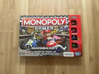 Emocionante juego de mesa Monopoly Gamer con temática de Mario Kart. Compite por la máxima puntuación. - Incluye personajes como Mario, Princesa Peach, Luigi y Toad. - Diseñado para jugadores a partir de 8 años.