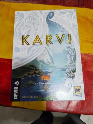 Juego de mesa Karvi. - Juego de estrategia. - Ilustraciones nórdicas. - Diseñado por Torgeir Tjond. - Publicado por Devir y Hans im Glück.