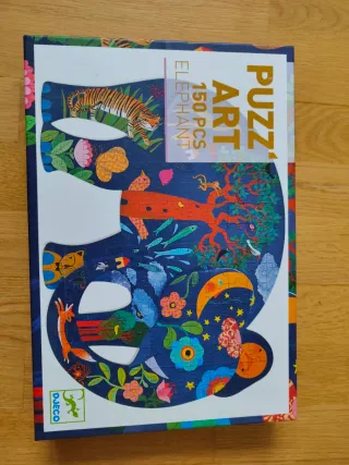 Puzzle de la marca Djeco con diseño de elefante y animales. - 150 piezas. - Ilustración colorida y detallada.