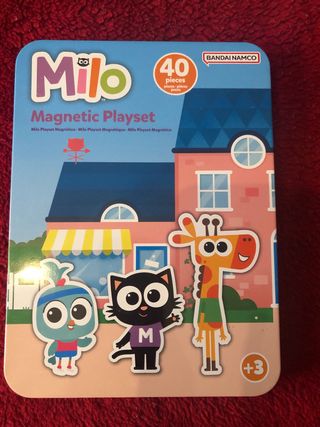 Set de imanes Milo Magnetic Playset con 40 piezas. - Incluye personajes y elementos para crear escenas. - Diseñado para niños a partir de 3 años. - Marca Bandai Namco.
