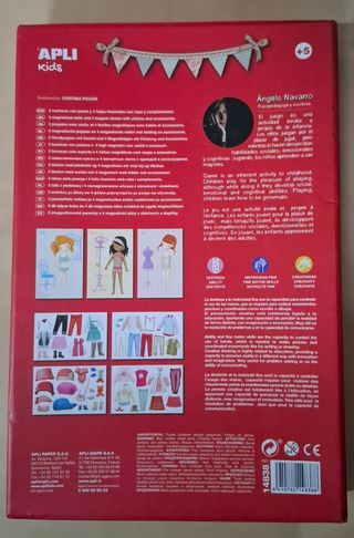 Divertido juego de vestir muñecas con imanes. - Incluye figuras de niñas y ropa magnética. - Diseños de moda y accesorios. - Fomenta la creatividad y el juego de roles. - Marca APLI Kids.